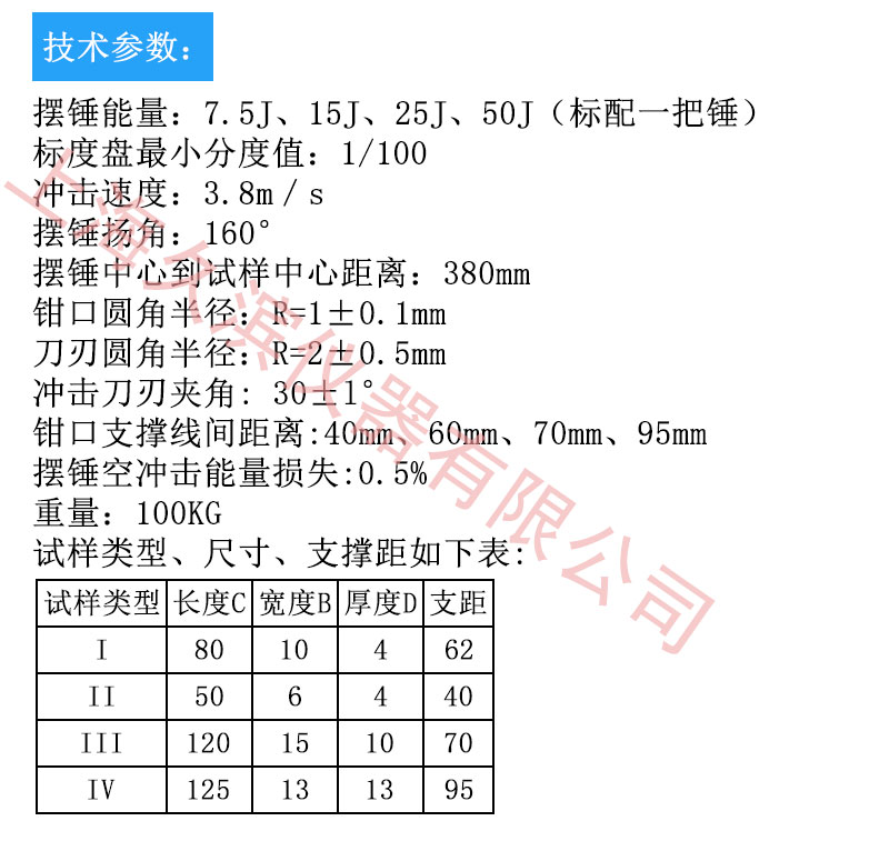 簡支梁沖擊試驗機,符合ISO179、GB/T1043、GB/T8762等標準,適用于各種非金屬材料沖擊韌性測試,包括機械加工及注塑成型有缺口和無缺口的試樣。指針式結構簡單、操作方便、測試速度快、數據準確、性能穩定可靠。