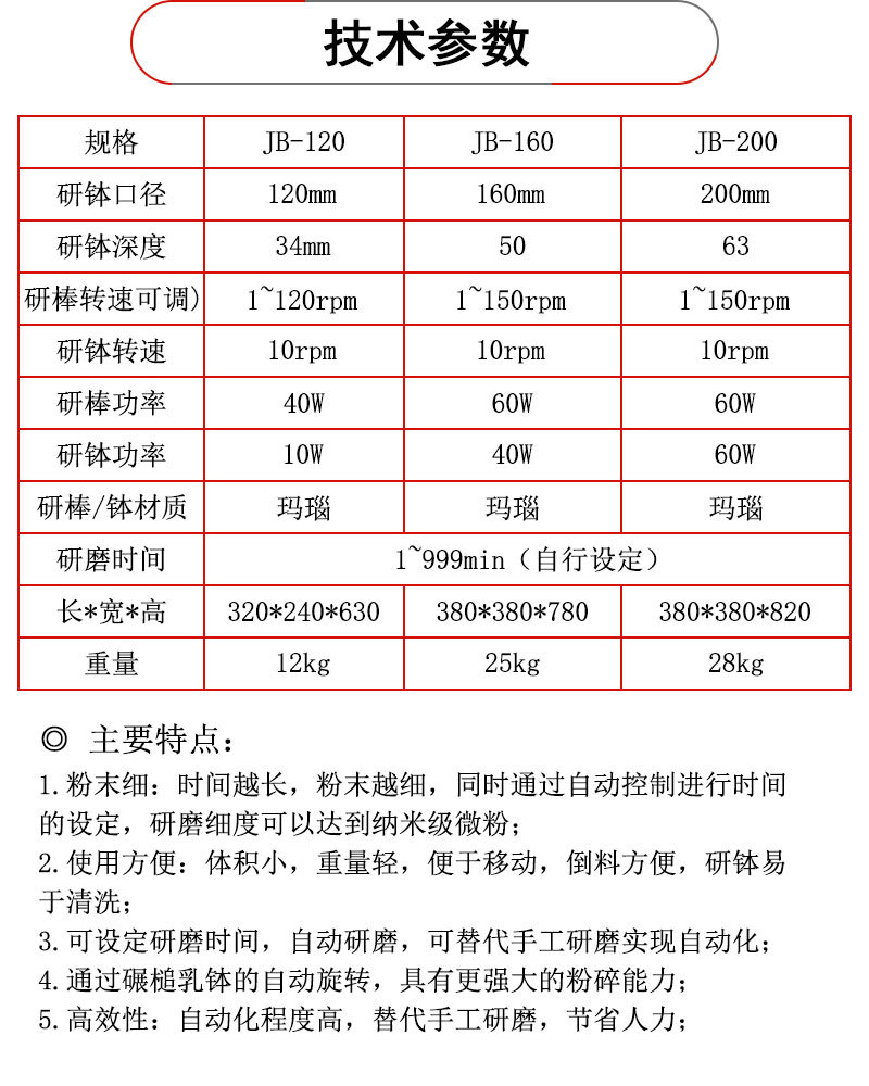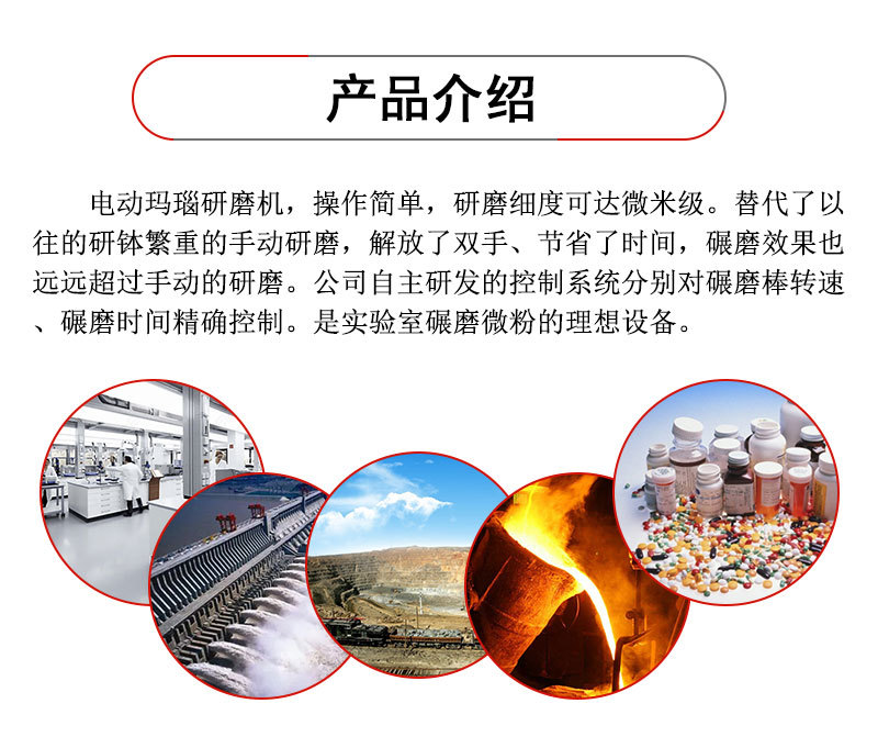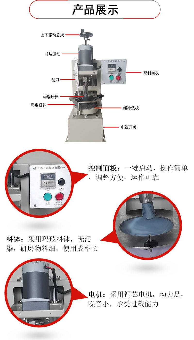 電動瑪瑙研磨機,具有操做簡單,研磨細度可達微米級。替代了以往的研缽繁重的手動研磨,解放了雙手、節省了時間,碾磨效果也遠遠超過手動的研磨。