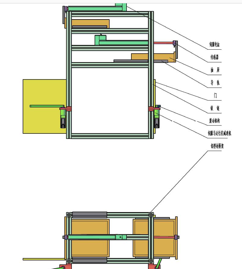 ★ 傳動部分:2套伺服電動缸(抽屜滑軌)、2套伺服馬達及行星減速機(門鉸鏈)。