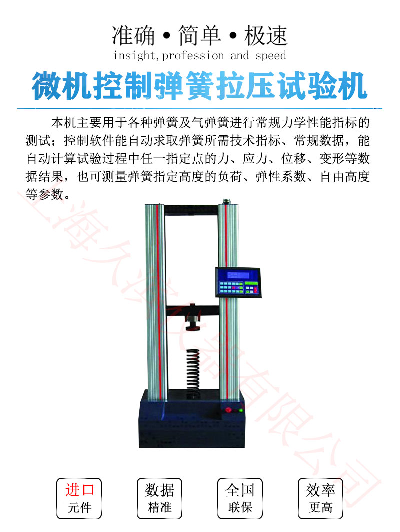 微機控制彈簧拉壓試驗機是按照國家標準規定的彈簧試驗規范而設計制造的專用測試設備。