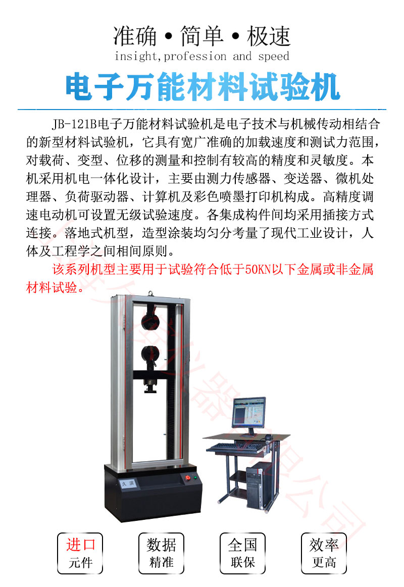 JB-121系列電子萬(wàn)能材料試驗(yàn)機(jī)是電子技術(shù)與機(jī)械傳動(dòng)相結(jié)合的新型材料試驗(yàn)機(jī),它具有寬廣準(zhǔn)確的加載速度和測(cè)試力范圍,對(duì)載荷、變型、位移的測(cè)量和控制有較高的精度和靈敏度。本機(jī)采用機(jī)電一體化設(shè)計(jì),主要由測(cè)力傳感器、變送器、微機(jī)處理器、負(fù)荷驅(qū)動(dòng)器、計(jì)算機(jī)及彩色噴墨打印機(jī)構(gòu)成。高精度調(diào)速電動(dòng)機(jī)可設(shè)置無(wú)級(jí)試驗(yàn)速度。各集成構(gòu)件間均采用插接方式連接。落地式機(jī)型,造型涂裝均勻分考量了現(xiàn)代工業(yè)設(shè)計(jì),人體及工程學(xué)之間相間原則。