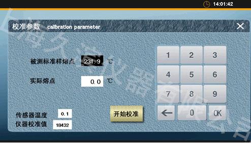 a. 如圖1.5點擊【停止】系統(tǒng)即停止。 b. 運行時無法對儀器進行設(shè)置。 差示掃描量熱儀的校準溫度界面: