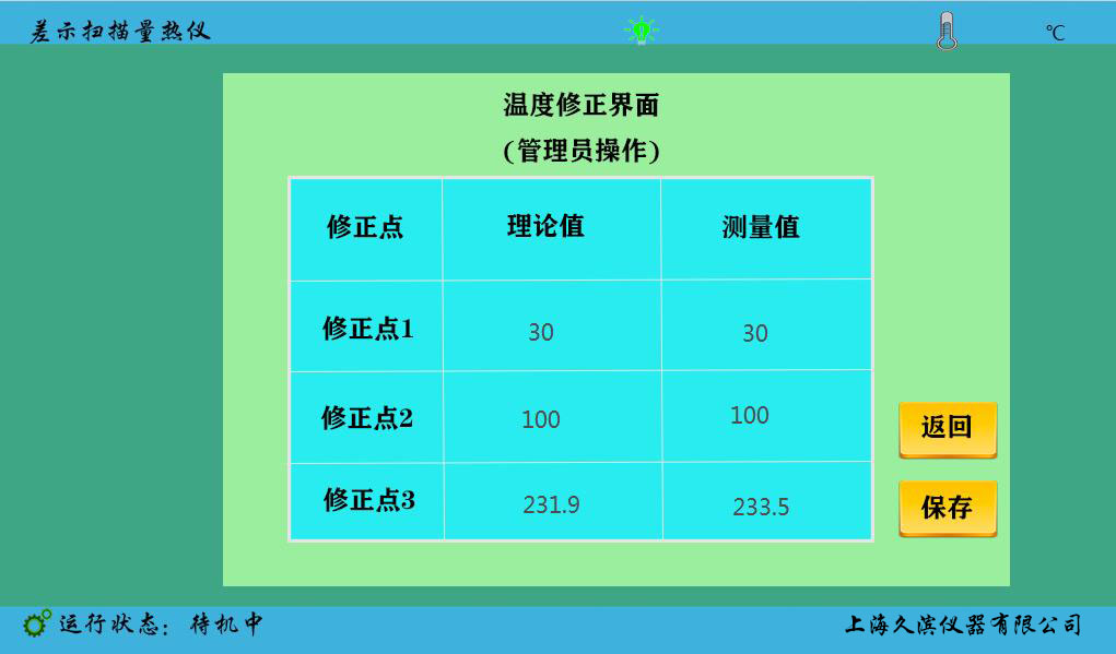 2、關機重啟、重新打開軟件、儀器,連接成功后再次測量錫的熔點值,若實際測量的溫度若不在231.9±1℃范圍內,重復上述操作,直到錫的熔點值在231.9±1℃范圍內為止。
